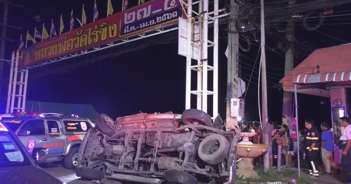 นครปฐม 15 ต.ค.- เกิดอุบัติเหตุชนกันเต็มแรงกลางดึกถึง 3 คัน ถนนสามพราน-นครปฐม ทางเข้าวัดไร่ขิง เสียชีวิต 3 ราย เมื่อเวลา 03.00 น. (15 ต.ค.) ร.ต.อ.วสันต์ ตั้งธรรม พนักงานสอบสวน สภ.โพธิ์แก้ว อ.สามพราน จ.นครปฐม ประสานมูลนิธิป่อเต็กตึ้งเข้าช่วยเหลืออุบัติเหตุรถชนกันหลายคันบนถนนเพชรเกษม ปากทางเข้าวัดไร่ขิง อ.สามพราน พบผู้เสียชีวิต 3 ราย หนึ่งในนี้ติดอยู่ในรถกระบะ ทะเบียน ญง 5436 กรุงเทพมหานคร สภาพพังยับเยินชนกับตอม่อป้ายทางเข้าวัด คือ นายธวัชชัย กล่ำดิษฐ์ อายุ 41 ปี นายวุฒิพงษ์ หนูจิตร อายุ 23 ปี อีกรายเป็นชายยังไม่ทราบชื่อ นอกจากนี้ ยังมีหญิงบาดเจ็บอีก 2 ราย ถูกนำส่งโรงพยาบาลสามพราน ส่วนรถกระบะอีก 2 คัน ที่ได้รับความเสียหายเช่นกัน […]