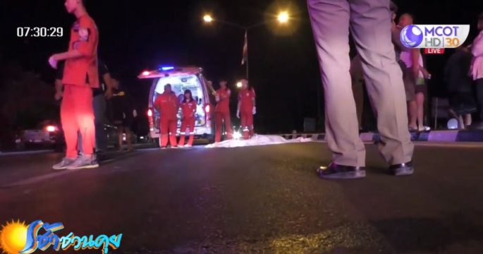 สาวข้ามถนนในมุมมืด ถูกรถเก๋งขับลงสะพานมา มองไม่เห็นพุ่งชนอย่างจัง เสียชีวิตทันทีบนถนนกัลปพฤกษ์