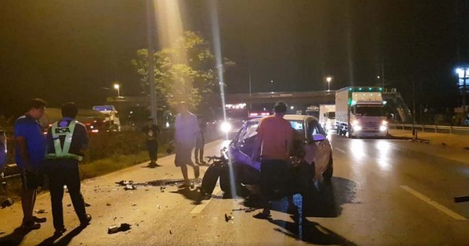 สมุทรสาคร 7 ก.พ.- เกิดอุบัติเหตุกลางถนนพระราม 2 เมืองสมุทรสาคร เก๋งขาวเสยท้ายรถตรวจการณ์สร้างถนนทางหลวงจอดเปิดไฟกระพริบขณะช่วยเหลือรถแวนตกร่องกลางถนน มีผู้บาดเจ็บ 2 เมื่อเวลา 03.30 น. (7 ก.พ.) ร.ต.อ.พลกฤษณ์ เกิดชัย รองสารวัตร (สอบสวน) สภ.เมืองสมุทรสาคร ประสานเจ้าหน้าที่มูลนิธิการกุศลสมุทรสาครเร่งช่วยเหลืออุบัติเหตุซ้ำซ้อนช่องทางด่วน ถ.พระราม 2 กม.ที่ 20+700 หมู่ 2 ต.คอกกระบือ อ.เมือง พบรถเก๋งสีขาว สภาพด้านหน้าพังเสียหาย คนขับบาดเจ็บถูกนำส่งโรงพยาบาลเป็นหญิง อายุ 44 ปี ส่วนอีกคันเป็นรถกระบะตรวจการณ์ของกรมทางหลวง และคนขับเป็นชาย อายุ 32 ปี เจ็บเล็กน้อย นอกจากนี้ ยังมีรถแวนตกอยู่ในร่องน้ำกลางถนน เป็นรับจ้างส่งนักท่องเที่ยวต่างชาติ สภาพด้านท้ายถูกชน การสอบสวนคนขับรถตรวจการณ์ทางถนนของกรมทางหลวงทราบว่า ขณะตรวจตราความเรียบร้อยการก่อสร้างทางพบรถแวนอยู่ในร่องน้ำกลางถนน จึงจอดรถพร้อมเปิดสัญญาณไฟฉุกเฉิน เพื่อลงไปช่วยเหลือ ปรากฏว่ามีรถเก๋งสีขาวแล่นเข้ามาชนท้ายรถกระบะอย่างแรง ทำให้หญิงคนขับได้รับบาดเจ็บ ทั้งนี้ เจ้าหน้าที่จะนำกล้องวงจรปิดบริเวณใกล้จุดเกิดเหตุและจะสอบปากคำคนขับรถทั้ง 3 คัน […]