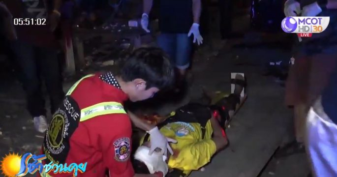 รถบัสเช่าเหมาคันพาพนักงานเทศบาลตำบลดอนประดู่ อ.ปากพะยูน จ.พัทลุง ไปศึกษาดูงานที่สระบุรี ยางระเบิดเสียหลักตกถนนชนเสาไฟฟ้าถนนเพชรเกษม อ.เมืองประจวบคีรีขันธ์ บาดเจ็บกว่า 30 คน
