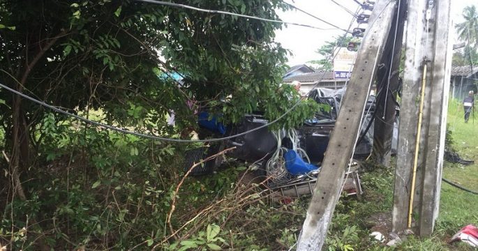 ชนแรงเสาไฟฟ้าถนนท่าศาลา-นครศรีฯ คนขับเสียชีวิต