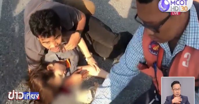 หน่วยกู้ชีพช่วยกันปฐมพยาบาลเบื้องต้นให้กับนายวิน อ่อง หนุ่มชาวเมียนมา หลังน้อยใจแฟนสาวตีตัวออกห่าง ตัดสินใจฆ่าตัวตายวิ่งข้ามถนนสายหลักเพื่อให้รถชน