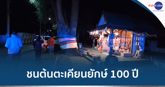 กระบะเสียหลักพุ่งชนต้นตะเคียนยักษ์อายุกว่า 100 ปี คนขับแค่บาดเจ็บเล็กน้อย