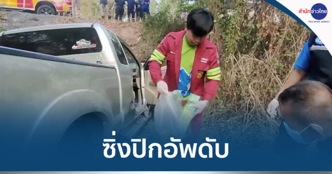 สาวใหญ่ อ.เมืองอุดรธานี ซิ่งปิคอัพส่งอาหารเสริมเสียหลักลงข้างทางดับ คาดหลับใน