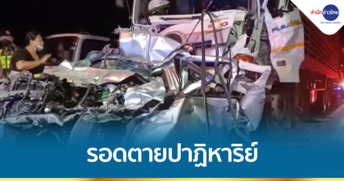 รถบรรทุกหลับในพุ่งชนท้ายกระบะเละทั้งคัน คนขับรอดปาฏิหาริย์
