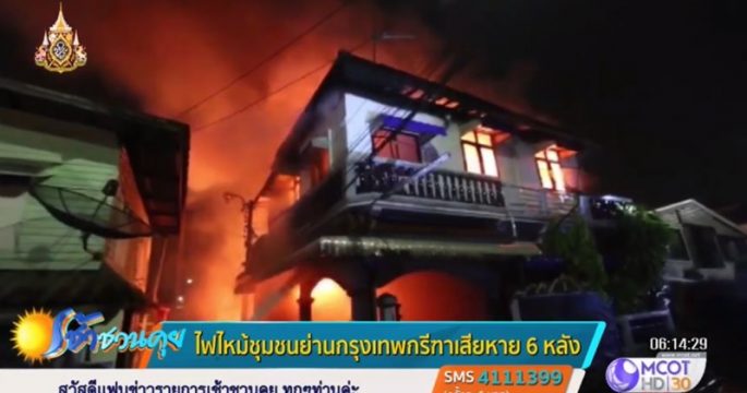 ไฟไหม้ชุมชนซาฮาดะห์ ภายในซอยกรุงเทพกรีฑา 26 แยก 1 เจ้าหน้าที่ระดมรถดับเพลิง 10 คัน ฉีดน้ำสกัดใช้เวลากว่า 20 นาที เพลิงจึงสงบ เบื้องต้นเสียหาย 6 หลังคาเรือน