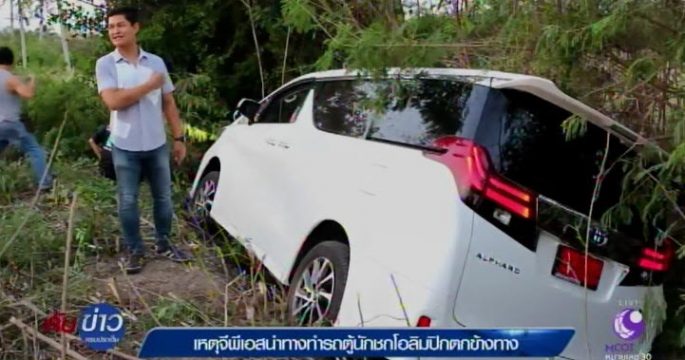 สองนักมวยดังกีฬาโอลิมปิก ใช้จีพีเอสนำทางกลับกทม. แต่ไม่ชินเส้นทาง ทำรถตกข้างทาง โชคดีไม่มีผู้ได้รับบาดเจ็บ