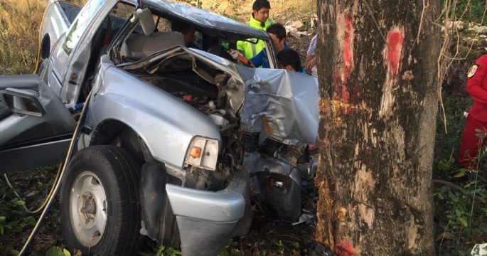 รถยนต์เก๋งนักศึกษาเชียงใหม่ พุ่งลงร่องน้ำข้างทาง ชนกับท่อประปาขนาดใหญ่ บริเวณถนนสายเชียงใหม่-แม่โจ้ จนรถพลิกหงายท้อง มีผู้เสียชีวิต 2 คน คาดหลับใน