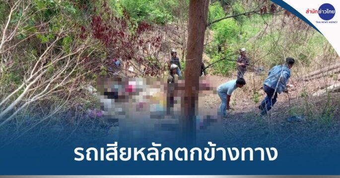 ชาวกัมพูชา พาพี่น้องมาซื้อของฝั่งไทยที่ อ.บ้านกรวด จ.บุรีรัมย์ จะเอาไปฉลองสงกรานต์ ขากลับทางลาดชัน ใส่เกียร์ต่ำไม่ได้ เสียหลักลงข้างทาง เสียชีวิต 5 เจ็บ 11
