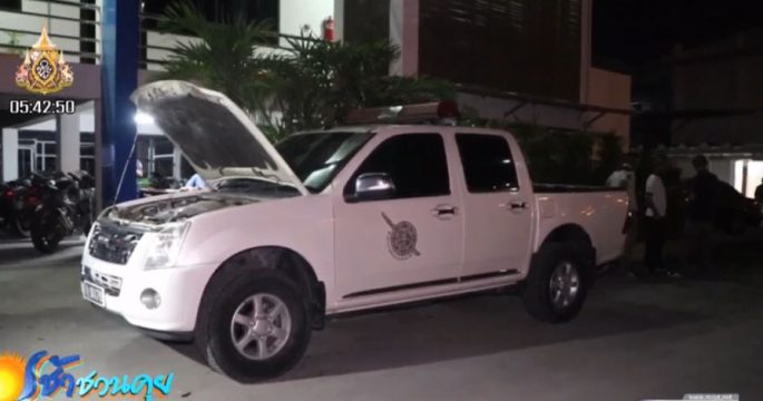 บึ้มสนั่นโรงพัก! มือมืดซุกระเบิดใต้รถกระบะของตำรวจ