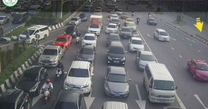 จราจรเช้าวันพุธ ถนนนราธิวาสฯ ขาเข้า ไปแยกนรินทร ติดขัด ส่วนถนนวิภาวดี-รังสิต ขาเข้า เคลื่อนตัวได้ช้าๆ
