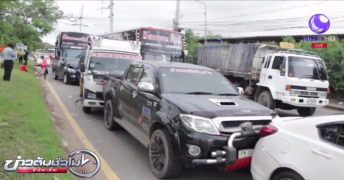 กระบะจอดติดไฟแดงต่างระดับท่าสะอ้าน อ.บางปะกง จ.ฉะเชิงเทรา ถูกกระบะอีกคันชนท้าย รถกระเด็นไปไกลเกือบ 100 เมตร ท้ายรถยุบพังเสียหาย ชายวัย 79 ปี ที่นั่งมาในรถ บาดเจ็บ ขยับตัวไม่ได้ เจ้าหน้าที่นำตัวส่งโรงพยาบาล