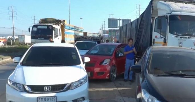 หกล้อหลับในวูบชนรถติดไฟแดงพังเสียหาย 5 คันรวด