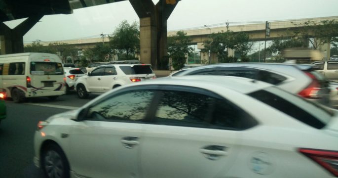 fm91trafficpro รายงานการจราจรเช้าวันพฤหัสบดี ถ.สุขุมวิท ขาเข้า ไปอ่อนนุช รถมากเคลื่อนตัวช้า สลับหยุดนิ่ง