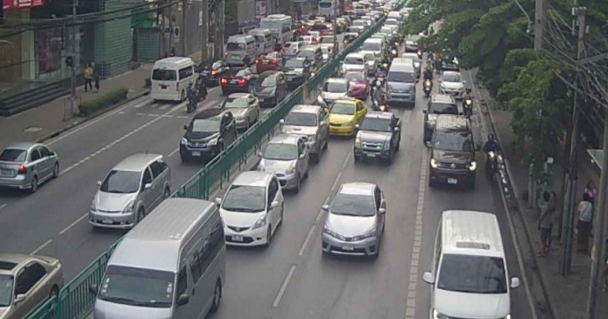 การจราจรเช้าวันศุกร์ ถนนเพชรบุรี แยกพร้อมพรรณ มุ่งหน้าแยกอโศกเพชร รถหนาแน่น เคลื่อนตัวได้ช้า