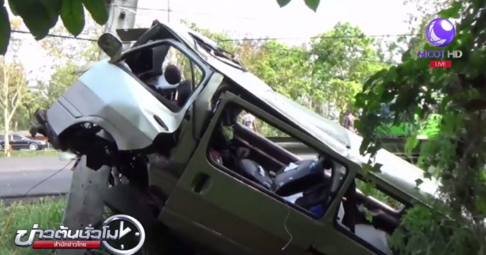 รถตู้รับส่งนักเรียน พุ่งชนเสาไฟฟ้าคนขับสาหัส เด็กเจ็บ 20 คน