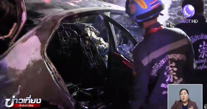 รถตู้ยางระเบิด เสียหลักฟาดต้นไม้ ดับ 1 ราย