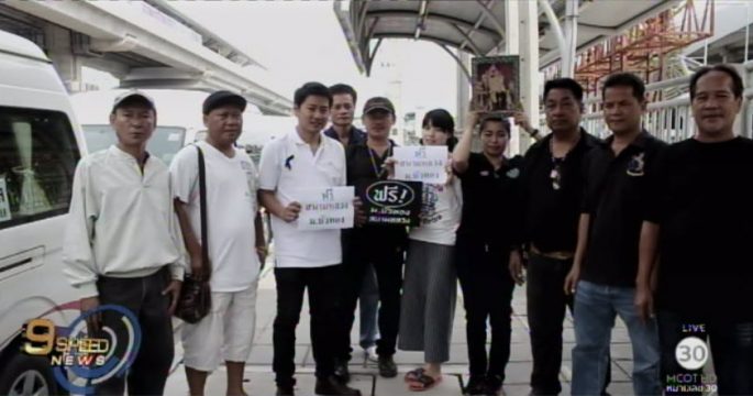 กลุ่มรถตู้สาธารณะนำรถมาบริการฟรีแก่ประชาชน ที่จะเดินทางไปถวายสักการะพระบรมศพ