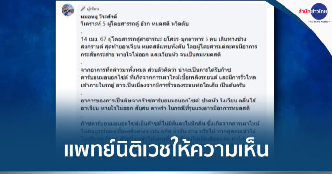 “หมอหมู” คาดผู้โดยสารสูดดมก๊าซคาร์บอนมอนอกไซด์