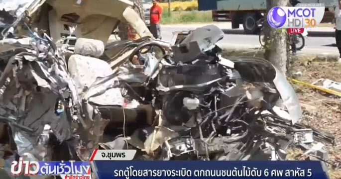 พนักงานสอบสวน สภ.สวี เข้าตรวจสอบเหตุรถตู้โดยสารไม่ประจำทาง ตกร่องกลางถนน และชนต้นไม้อย่างรุนแรง บริเวณถนนสายเอเชีย 41 หลักกิโลเมตรที่ 40 พื้นที่ตำบลนาโพธิ์ อำเภอสวี จังหวัดชุมพร