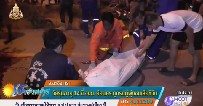 หนุ่มวัย 14 ปี พร้อมเพื่อน ขี่รถจักรยานยนต์ย้อนศร ถูกรถตู้โดยสารของโรงงานที่วิ่งมาด้วยความเร็วชนจนร่างกระเด็นเสียชีวิตคาที่ ส่วนเพื่อนบาดเจ็บสาหัส