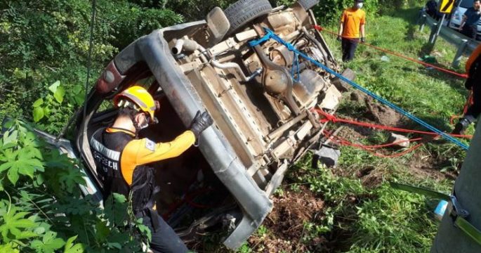 รถตู้โดยสารประสบอุบัติเหตุเสียหลักพลิกคว่ำไถลลงจากเนินเขาในเกาหลีใต้ แรงงานไทยตาย 2