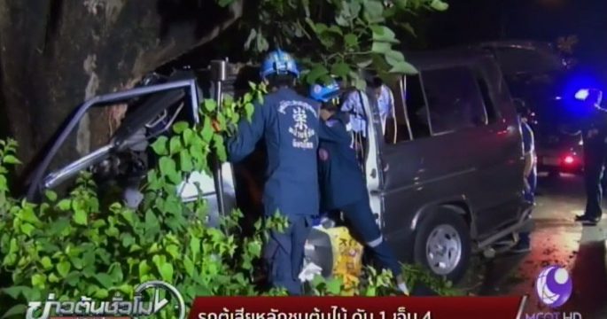 ผู้โดยสารรถตู้เสียหลักชนต้นไม้บนเกาะกลางถนนสายพิษณุโลก-นครสวรรค์ เสียชีวิต 1 บาดเจ็บ 4 คน