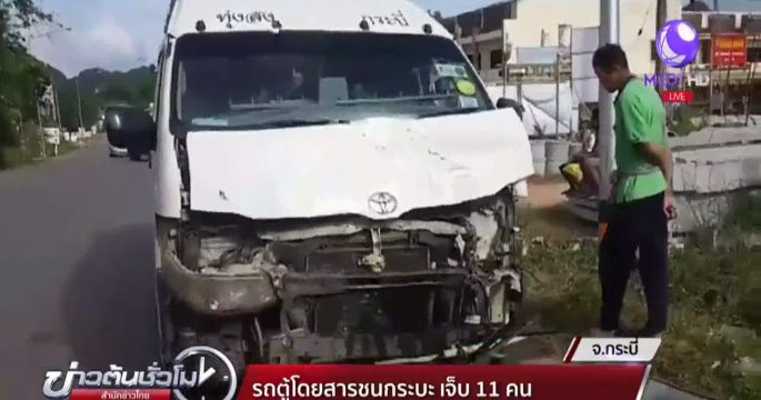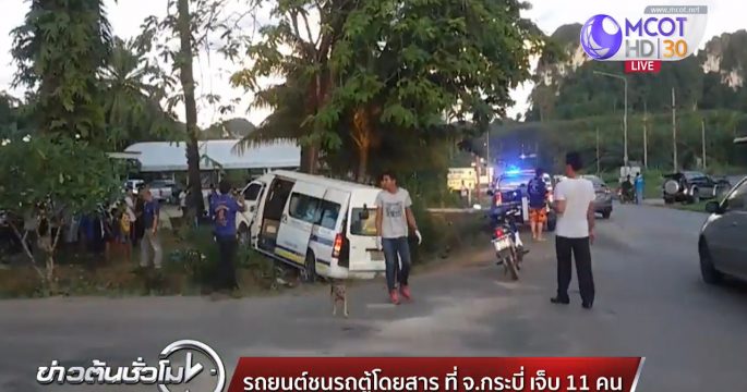 รถยนต์พุ่งชนรถตู้โดยสารกลางสี่แยกสวนปาล์ม จ.กระบี่ มีผู้บาดเจ็บ 11 คน คนขับรถยนต์อ้างไม่ชำนาญทางและไม่มีสัญญาณไฟจราจร
