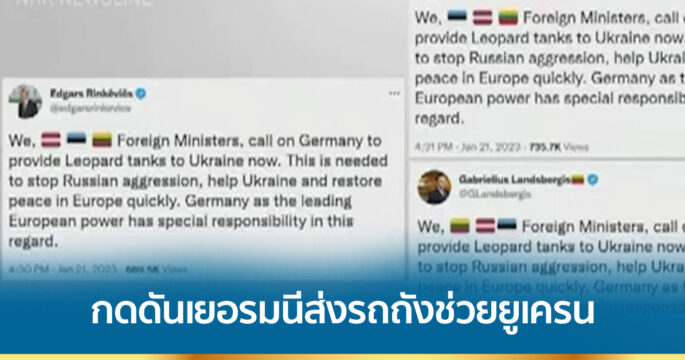 กลุ่มประเทศแถบทะเลบอลติกร่วมกันเรียกร้องให้เยอรมนีจัดส่งรถถังรุ่นเลพเพิด 2 ให้ยูเครนโดยทันที เพื่อหยุดยั้งปฏิบัติการทางทหารของรัสเซีย