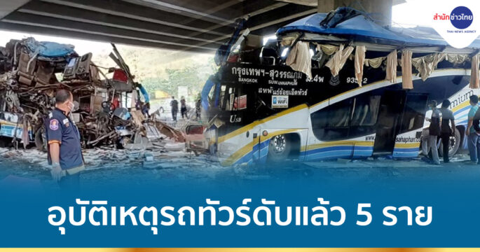 รถทัวร์สายกรุงเทพฯ – สุวรรณภูมิ ประสบอุบัติเหตุบนถนนมิตรภาพ จ.สระบุรี เบื้องต้นเสียชีวิต 5 ราย บาดเจ็บจำนวนมาก