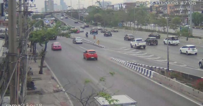จราจรเช้าวันศุกร์ ถนนพระราม 2 เข้าทางพิเศษเฉลิมมหานคร ข้ามสะพานพระราม 9 รถน้อย คล่องตัว
