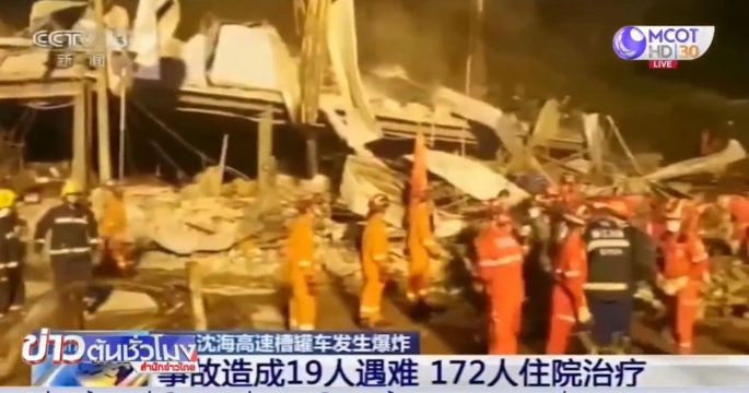 รถบรรทุกก๊าซระเบิดในจีน ตาย 19 เจ็บ 132