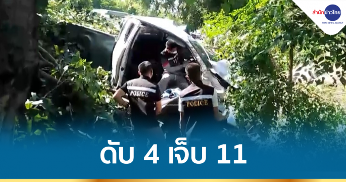 เกิดอุบัติเหตุรถกระบะบรรทุกคนงาน เสียหลักชนต้นไม้ใหญ่ บนทางหลวงหมายเลข 21 ต.ห้วยหิน อ.ชัยบาดาล จ.ลพบุรี มีผู้เสียชีวิต 4 คน บาดเจ็บ 11 คน