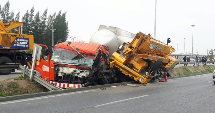 เกิดเหตุรถบรรทุกชนกัน บนถนนสายแม่สอด-ตาก ทำให้รถพลิกคว่ำ และมีแก๊สรั่วไหล เจ้าหน้าที่เร่งช่วยเหลือผู้บาดเจ็บ และเรียกรถดับเพลิงมาฉีดน้ำ พร้อมปิดการจราจรชั่วคราว