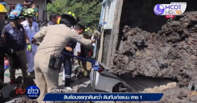 รถตู้ทัวร์จีนแซงไม่พ้นชนรถบรรทุกดิน เทกระจาดดินเกลื่อนถนน