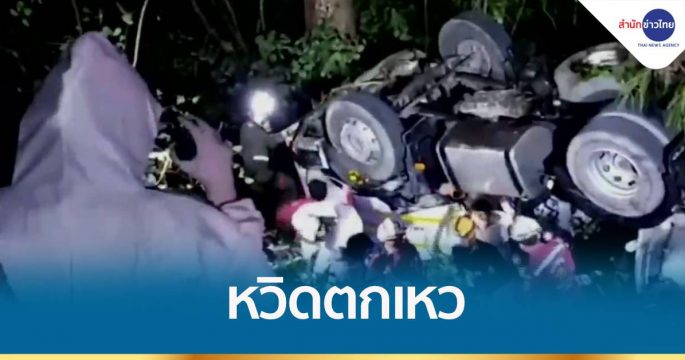 รถบรรทุกน้ำมันเสียหลักคว่ำ หวิดตกเหว คนขับสาหัส