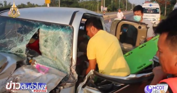 รถบรรทุกสิบล้อพุ่งชนรถสองแถว บริเวณถนนบายพาธ ทางเลี่ยงเมือง จ.นครราชสีมา ผู้โดยสารบาดเจ็บรถ 15 คน อาการสาหัส 5 คน