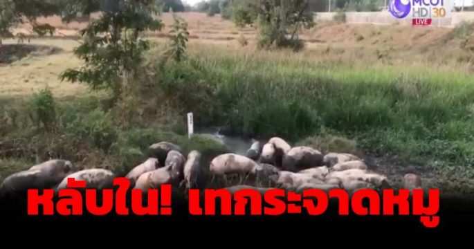 เกิดอุบัติเหตุรถ 6 ล้อบรรทุกหมูเสียหลักพลิกคว่ำ งานนี้เรียกกว่าเทกระจาด หมูเกลื่อนไปหมด ทั้งตายและเจ็บ