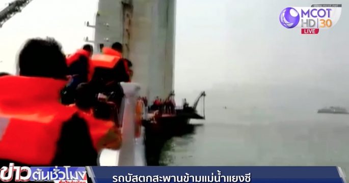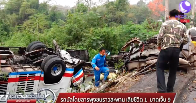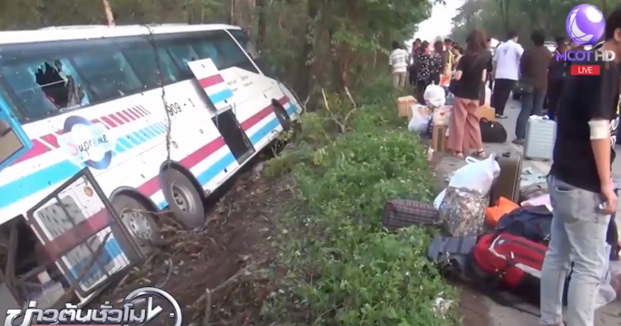รถบัสโดยสารพุ่งชนราวสะพานเสียชีวิต 1 บาดเจ็บ 8