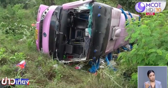 คืบเหตุบัสโดยสารพลิกคว่ำใน จ.ขอนแก่น ดับ 1 เจ็บ 32
