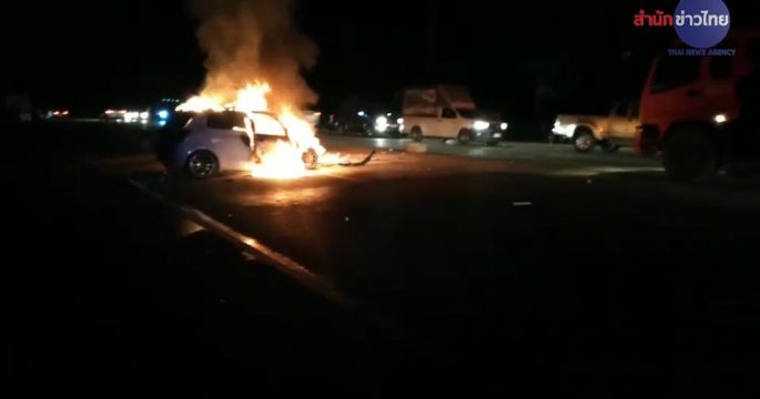 สาวท้อง 7 เดือน ขับเก๋งชนท้ายกระบะ ขณะกำลังจะเลี้ยวเข้าซอย กระเด็นไปกลางถนน มีรถบัสโดยสาร วิ่งสวนมาพอดี พุ่งชนเข้าอย่างจังเป็นเหตุให้มีผู้ได้รับบาดเจ็บ 17 ราย