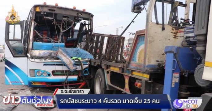 รถบัสชนระนาว 4 คันรวด บาดเจ็บ 25 คน