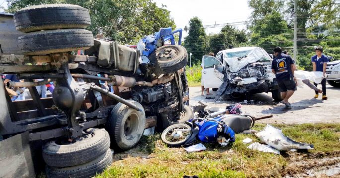 ทัวร์เสียหลักเจ็บระนาว-ชนดับ จยย.แม่พาลูกส่งโรงเรียน