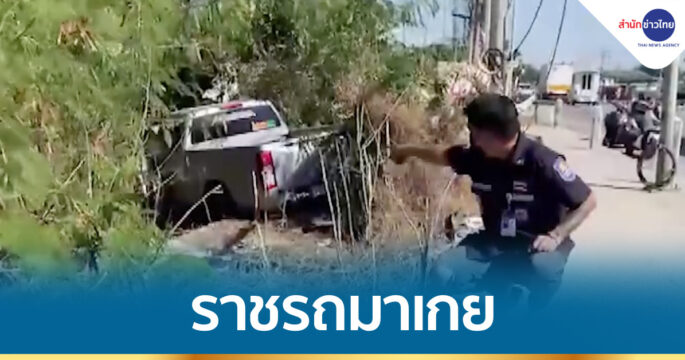 ยายเฉียดตาย กระบะเสียหลักพุ่งเข้าบ้าน ขอนไม้ช่วยชีวิตหยุดรถไม่ให้มาถึงตัว