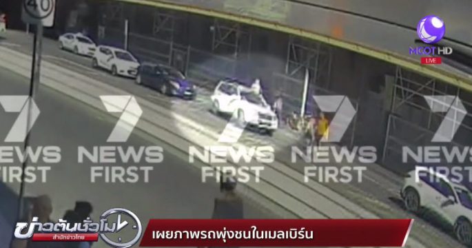 ภาพจากกล้องวงจรปิดที่เผยให้เห็นเหตุการณ์ขณะที่รถยนต์คันหนึ่งพุ่งชนผู้คนบนถนนฟลินเดอร์ สตรีทในนครเมลเบิร์นของออสเตรเลียเมื่อวันพฤหัสบดี ซึ่งทำให้มีผู้ได้รับบาดเจ็บไป 18 คน
