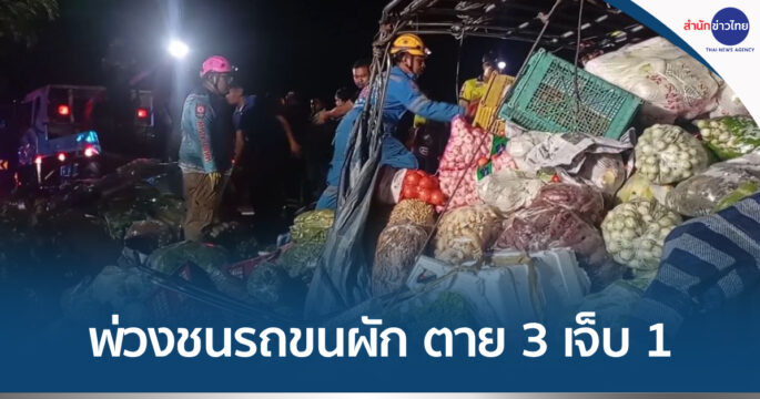 หนุ่มขับกระบะขนผักยางระเบิดจอดข้างทาง เพื่อนขับรถดัมพ์เห็นจึงจอดรถลงมาช่วย ถูกรถพ่วงมองไม่เห็นชนยับ ตู้คอนเทนเนอร์ทับร่างเสียชีวิต 3 ราย บาดเจ็บ 1 ราย