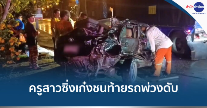ครูสาวรีบไปสอนหนังสือ ซิ่งเก๋งชนท้ายรถพ่วงดับคาพวงมาลัย