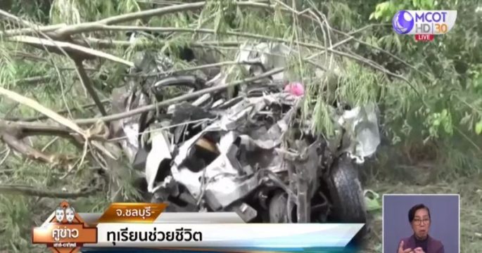 รอดตายเพราะทุเรียน รถกระบะแวะจอดซื้อทุเรียนข้างทาง รถพ่วงยางระเบิดเสียหลักพุ่งชนเหลือแต่เศษเหล็ก เคราะห์ดีไม่มีคนอยู่ในรถ เพราะลงมาชิมทุเรียน