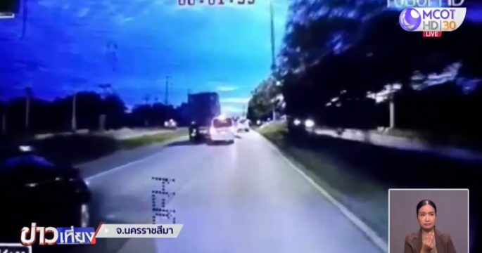 รถตู้ซิ่งเสียหลักพุ่งชนท้ายรถบรรทุกพ่วง 18 ล้อ บนถนนมิตรภาพ ขาออกตัวเมืองโคราช มีผู้บาดเจ็บติดภายในรถ 1 ราย