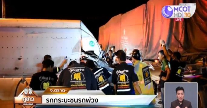 รถกระบะชนรถบรรทุกพ่วง 18 ล้อ หน้าแขวงการทางตราด ได้รับบาดเจ็บ 1 ราย ส่วนคนขับรถพ่วงอาศัยช่วงชุลมุนหลบหนี